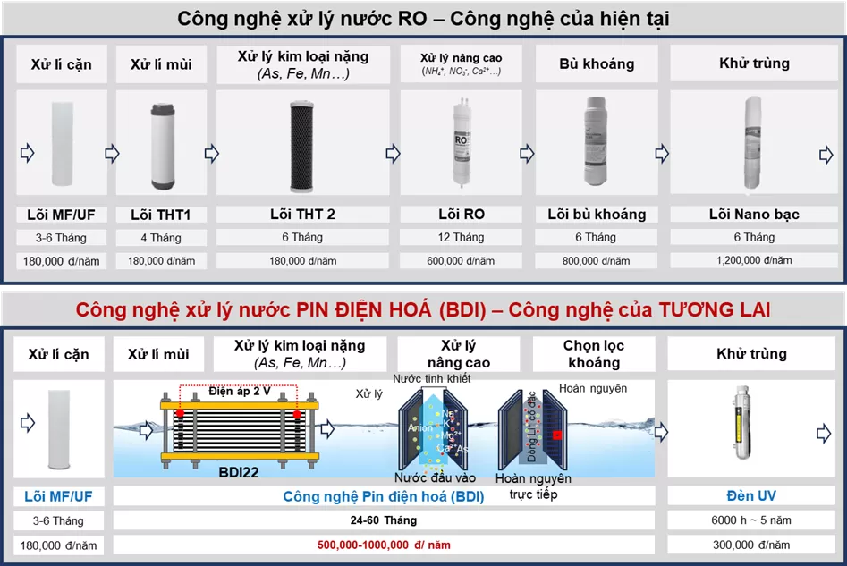 Hình 2. So sánh công nghệ pin điện hoá với công nghệ hiện tại